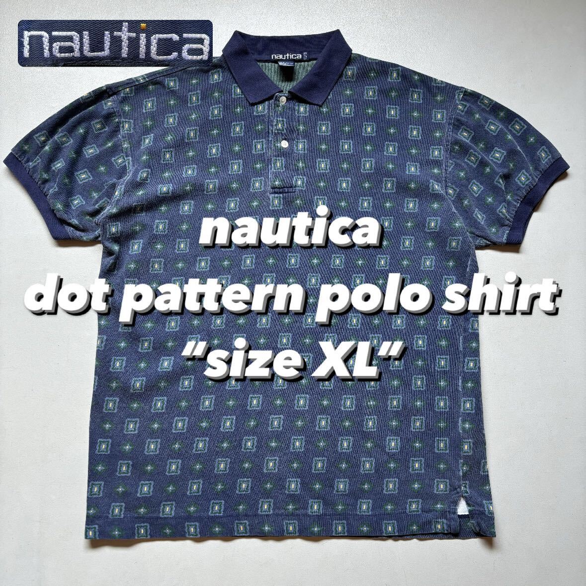 > nautica dot pattern polo shirt “size XL” ノーティカ ノーチカ ドット柄 ポロシャツ 紺 半袖ポロシャツ