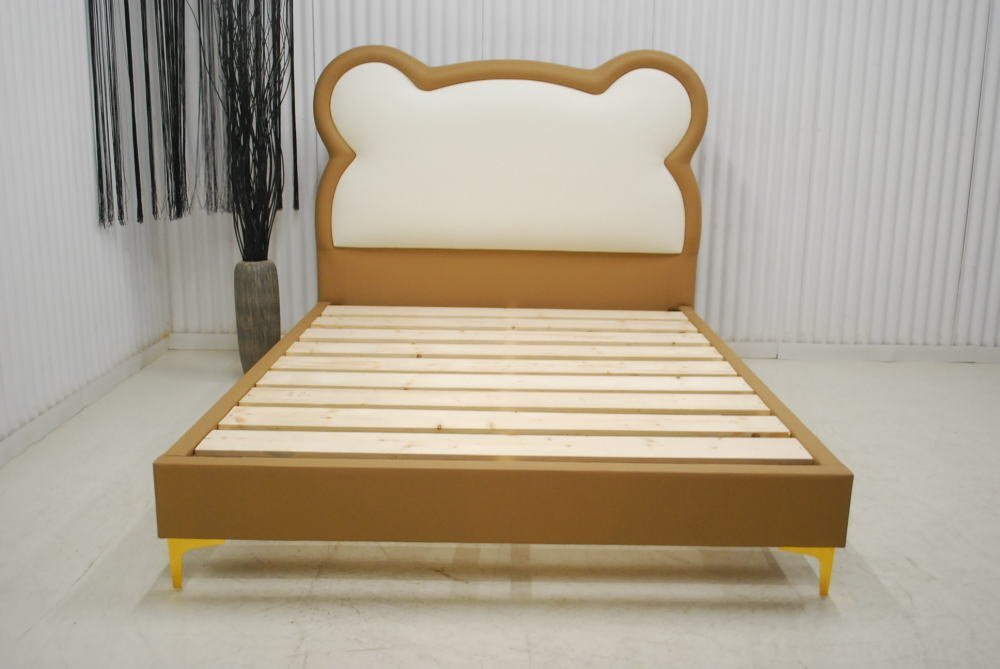 - 大特価 アウトレット 展示品 現品限り 送料無料 くまさんのデザインをした可愛いダブルベッドフレーム ゴールド脚 クマベッド くま