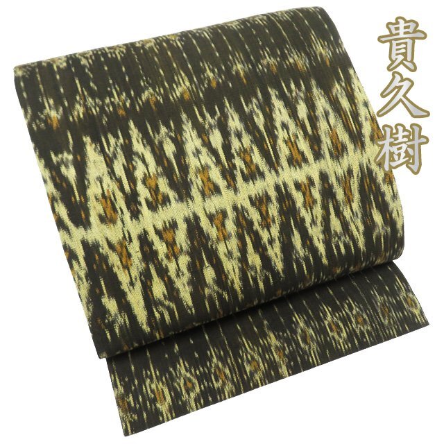- 特選 名古屋帯 中古 リサイクル 木綿 全通 カジュアル 貴久樹 イカット手織り 本草木染 ラベル付き 千歳茶色 多色 きもの北條 A1036-16