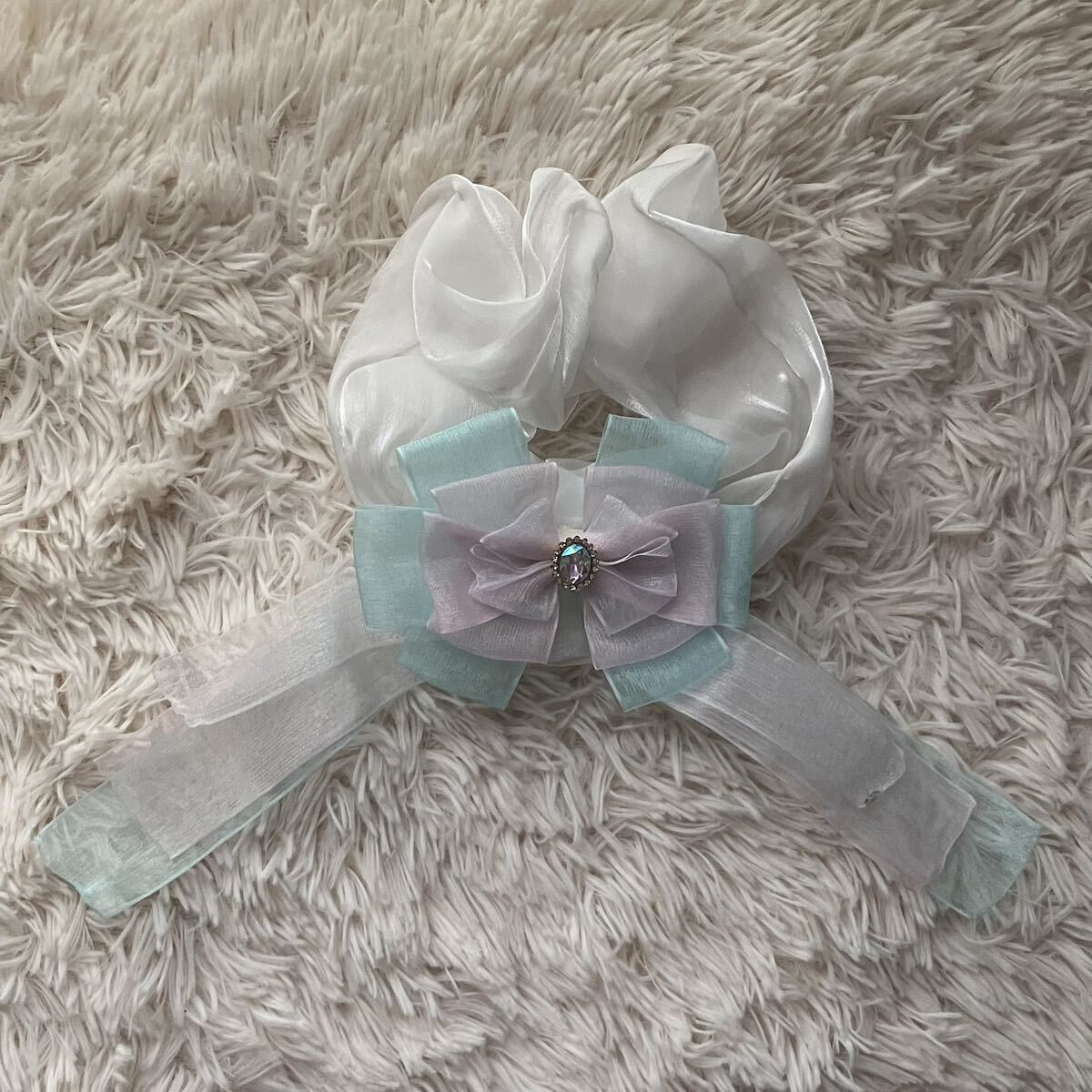 - ハンドメイド ペンライトリボン TOMORROW×TOGETHER イメージ シュシュ ヘアアクセサリー ブレスレット 髪飾りにも ② MOA棒