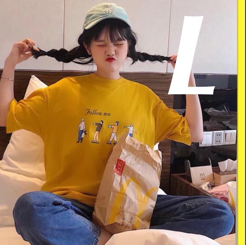 - ★大好評 ビッグシルエット プリント Tシャツ ダンス 衣装 通学 黄 L