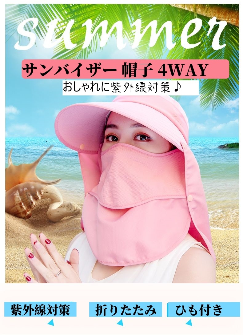 - レディース 日焼け防止 帽子【グレー】 4way 紫外線対策 サンバイザー UVカット つば広 折畳み 農作業 おしゃれ