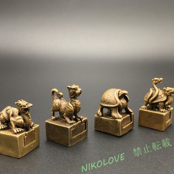 - 新品四大神獣 銅製 工芸品 風水 置物 青龍、白虎、朱雀、玄武 セット インテリア 小物 LC039