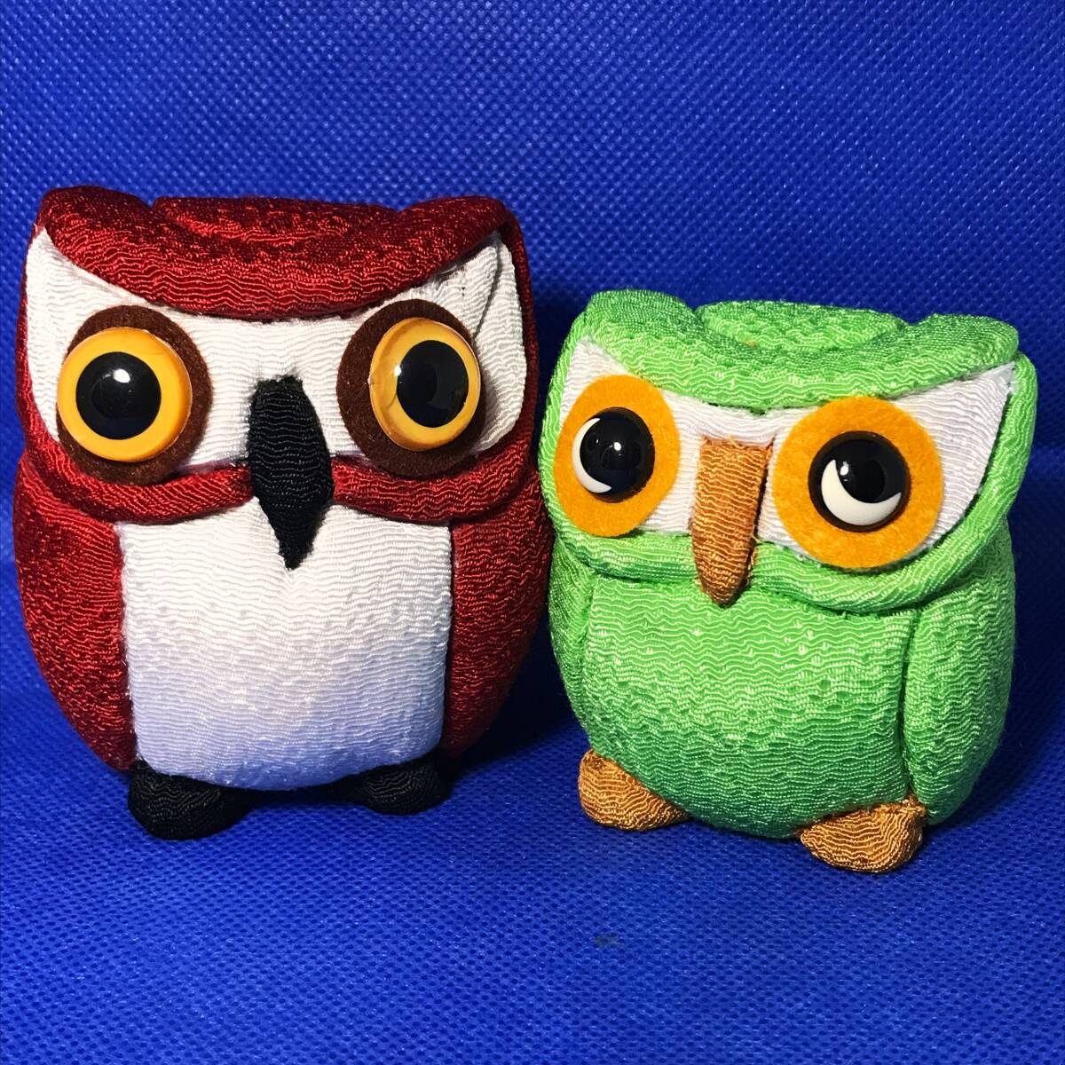 - 【インテリアに】かわいい ちりめん仕立て 夫婦ふくろう人形 和小物 置物 縁起物 一対