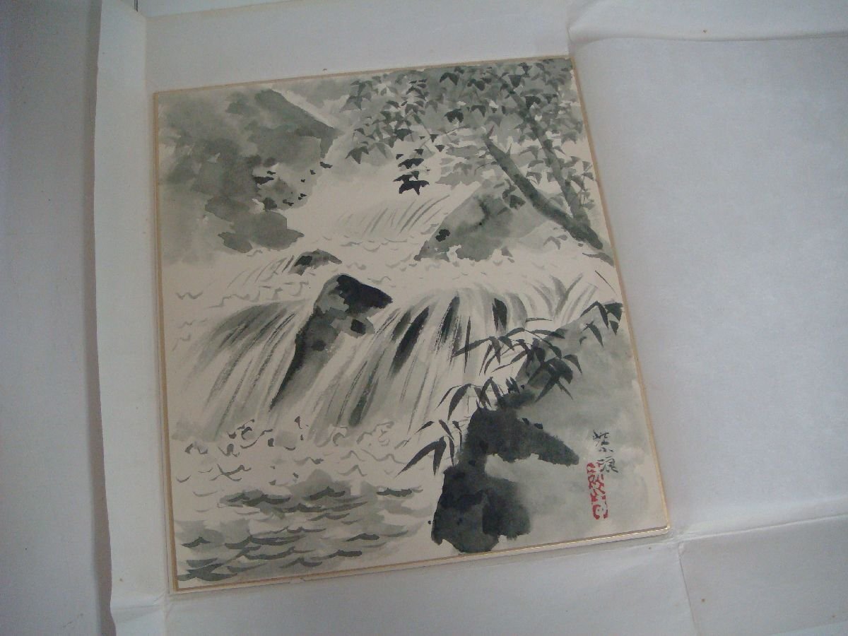 - MB/C27AM-DA1 珍品 笠松紫浪 浮世絵師 版画家 水墨画 色紙 風景画 笠松四郎 茶道具 和室 壁掛 インテリア