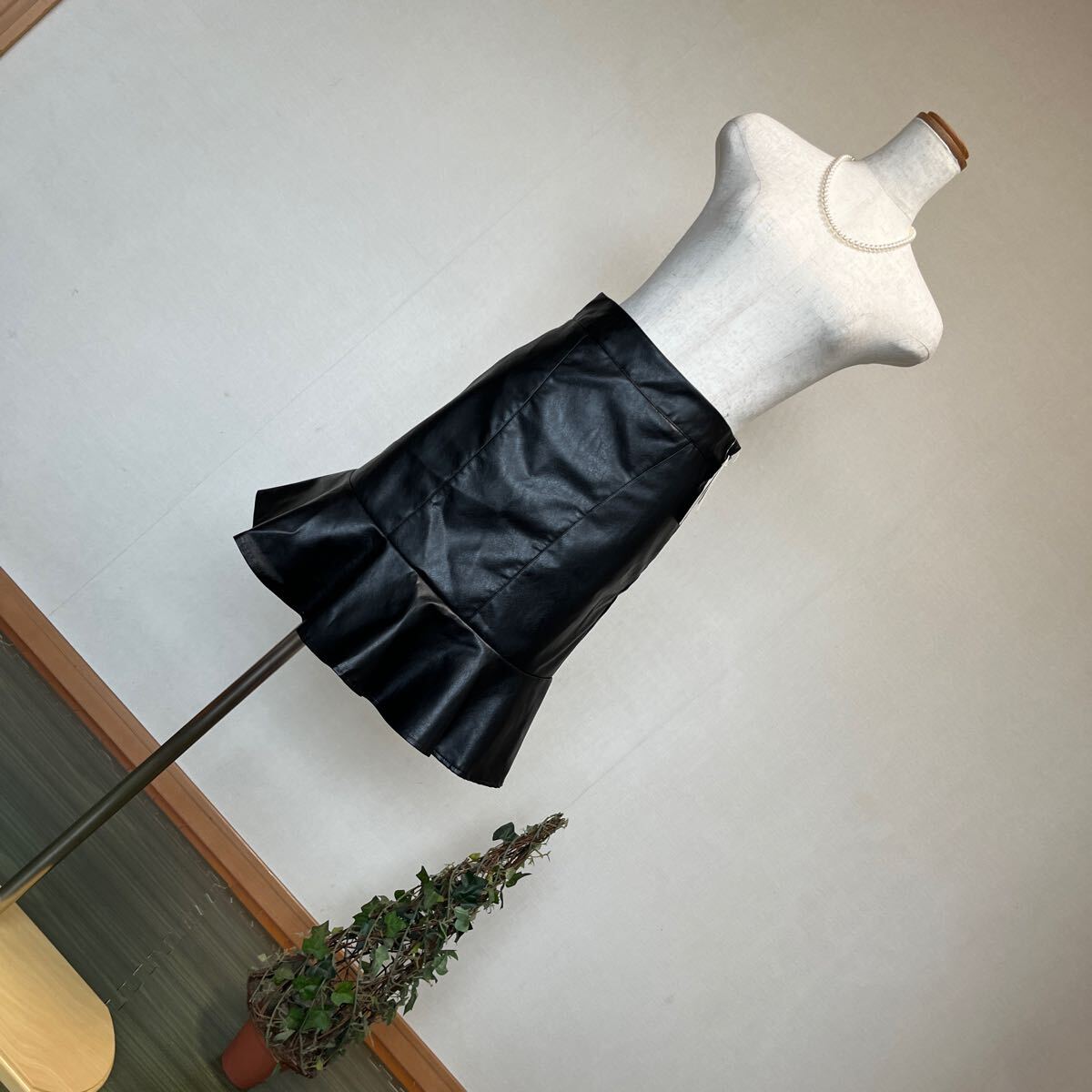 > 4-6新品 tocco closet(トッコクローゼット)フェイクレザーマーメイドスカートブラック 黒 エコレザー裾切替フレアスカート 9号 M