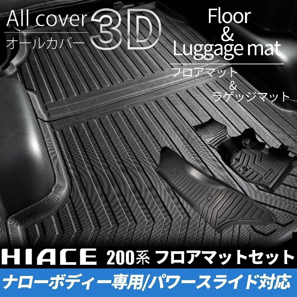 > ○ 200系 ハイエース 1型-7型 [S-GL ナローボディ] 3D フロアマット [フロント/セカンド] & パワースライドドア対応 ラゲッジマット セット