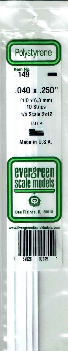 - エバーグリーン .040x.250 プラ棒 1.0x6.3mm 10本入り