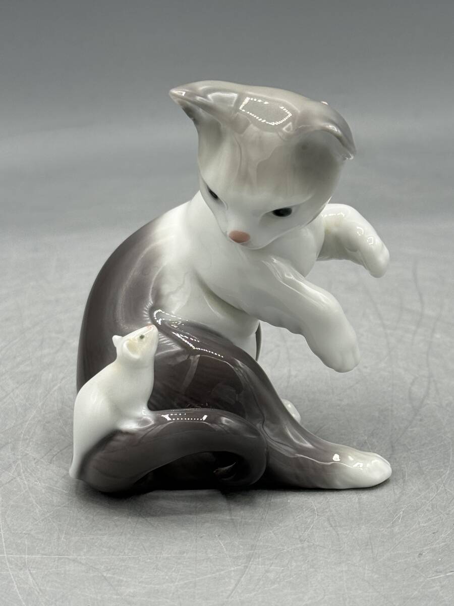 - リヤドロ ナオ 猫 ネズミ ネコ フィギュリン スペイン製 陶器 置物 陶磁器 陶磁器人形
