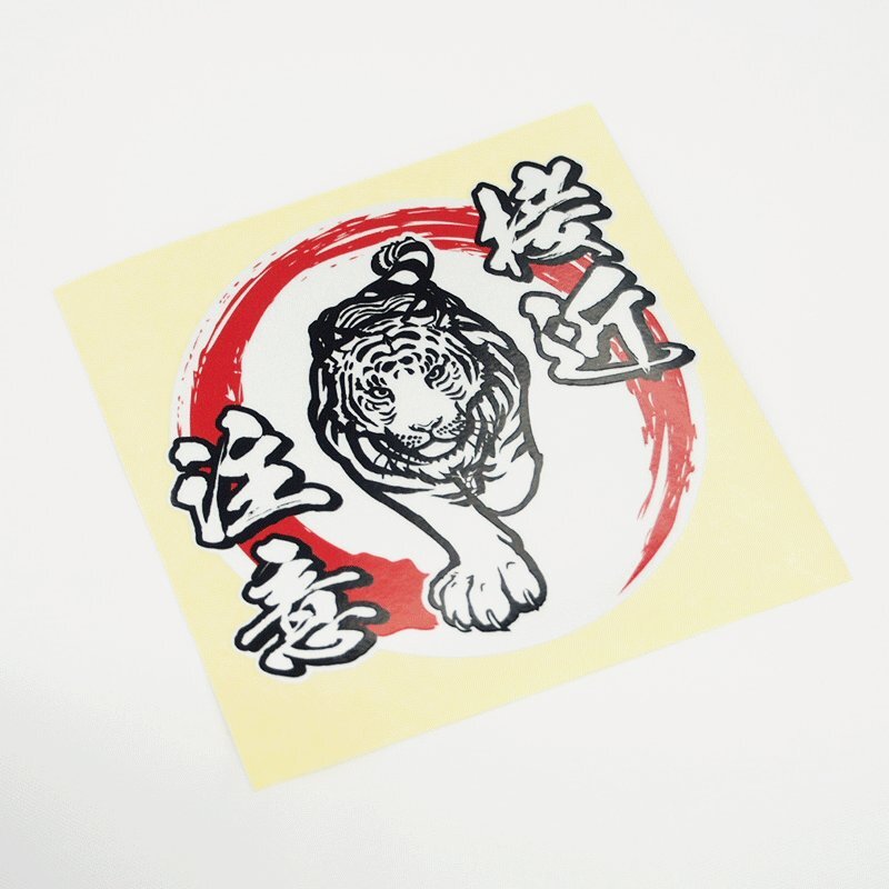 > (反射)接近注意ステッカー 和柄 トラ 虎 白虎×赤白 高齢者 初心者 サインステッカー シール 車用 トラック トラグッズ