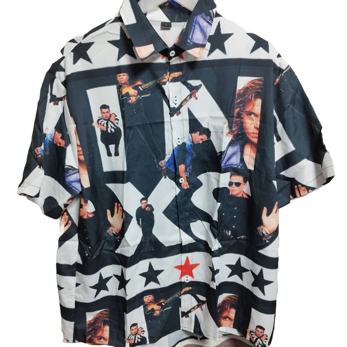 > 海外直輸入品★INXS インエクセス 名盤アルバム『KICK キック』半袖シャツ【Lサイズ】 総柄プリント バンドT