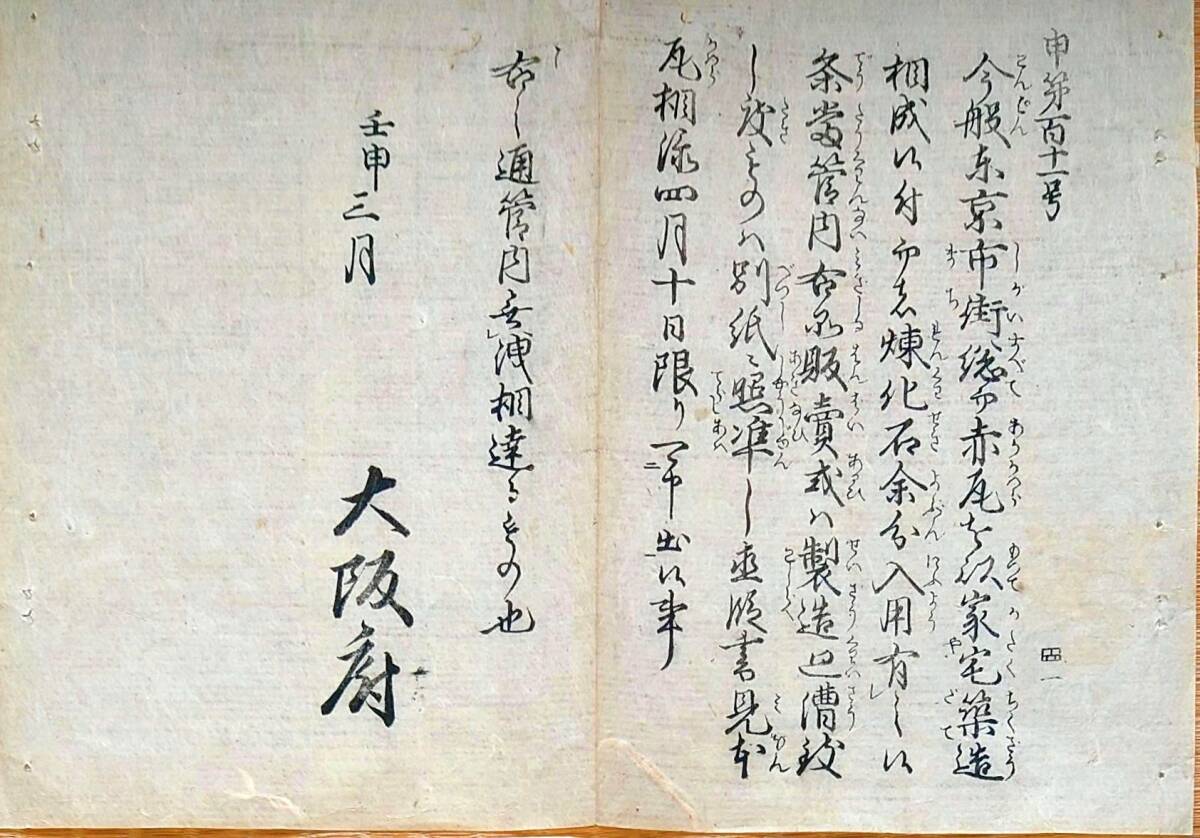 - f24062415〇明治布告布達 東京市街総て赤レンガ 図面雛形 レンガ入札仕様書 大阪府 明治5年〇和本古書古文書