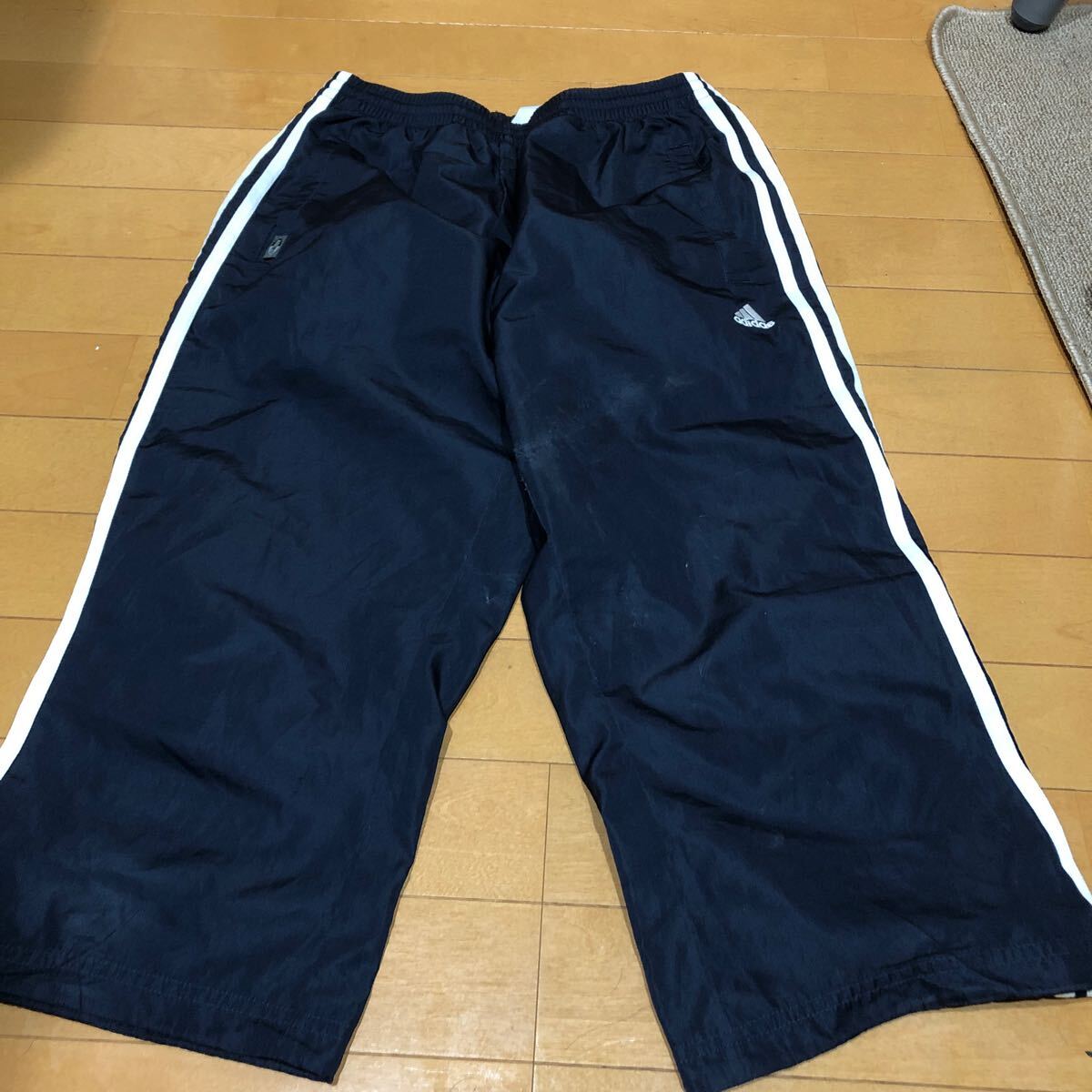 - adidas ナイロン 七部丈 ナイロンパンツ 紺