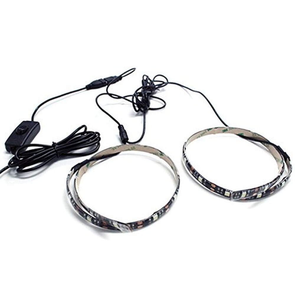 - USB 防水LEDテープライトUSB 防水LEDテープライト DC5V 3チップ 黒ベース 50cm 2本 スイッチ付き 延長ケーブル1.8m 電球色