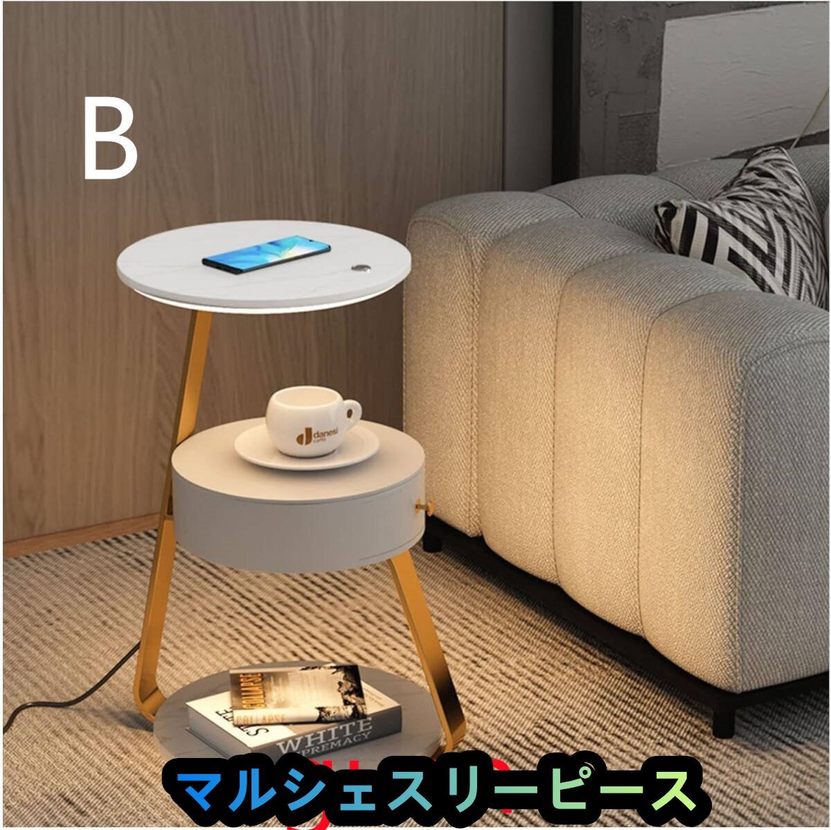 > 多機能 無垢材のベッドサイドテーブル,スマート ベッドサイド テーブル,ローチェスト,サイドテーブル コンセント付き B