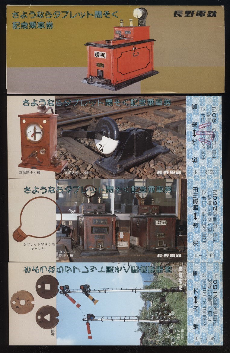 - さようならタブレット閉そく記念乗車券3枚 長野電鉄 :須坂-屋代間CTC化 タブレット閉そく廃止 双信閉そく機 通票 キャリア 錘柄式転てつ器