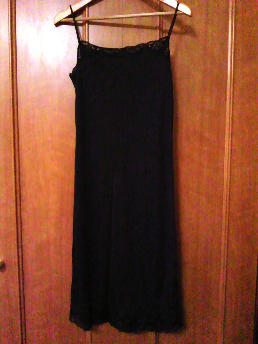 - 【ROPE(ロペ)】セクシーで上品な スリップドレス とろみ 胸元・裾レース 紺 M [パーティーOK/ワンピース/エレガント]
