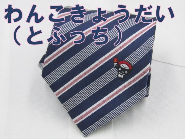 - 【とふっち】 NA 852 わんこきょうだい (とふっち) ネクタイ 紺系 ストライプ ワンポイント ブランドロゴ ジャガード