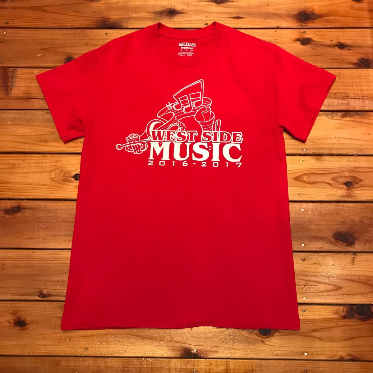> プリントTシャツ WEST SIDE MUSIC ギルダン GILDAN レッド系 Sサイズ USA古着 アメリカ古着つ