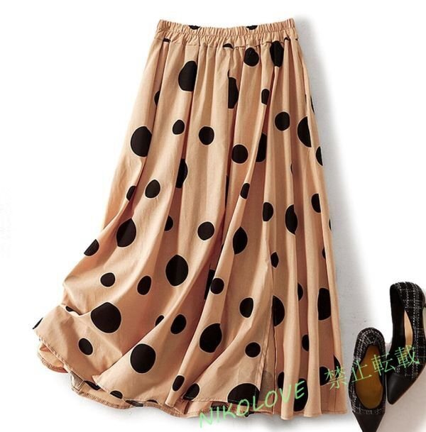 - 新品夏ボトムス スカート マキシ丈 レディース 大きいサイズ フレア ロングスカート 水玉柄 スカート フレアボリュームスカート XL LJ070