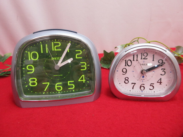 - 【OH7389/6】DAILY 目覚まし時計 置時計2台セット T25Z9G/A1049G シルバー 動作品♪