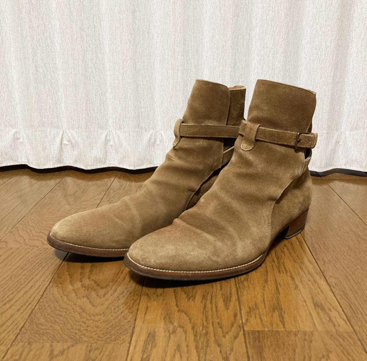 - [SAINT LAURENT PARIS] 定価135,000 スウェードレザー ジョッパーヒールブーツ 41 ベージュ WA420092 イタリア製 サンローランパリ