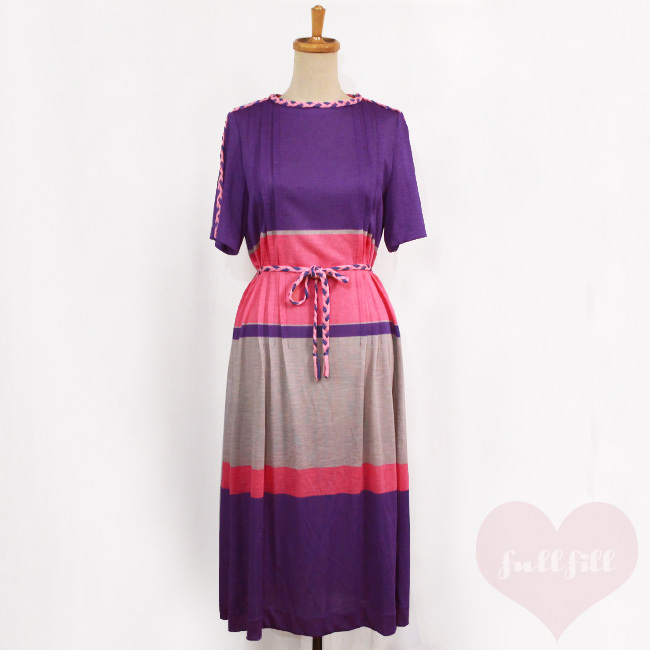 > 古着 ワンピース ビンテージ ヴィンテージ vintage 昭和レトロ ネオンカラー 個性的 派手 レトロポップ レディース古着 ピンク パープル 紫