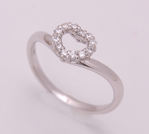 - 《質屋出品》スタージュエリー★k18WG天然ダイアモンド0.12ctハートリング★C-6042