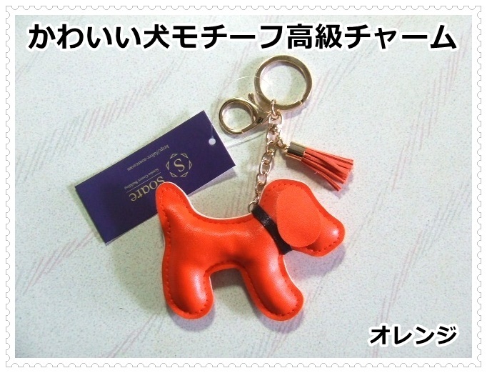 高級感ある合皮バッグチャーム(犬)ストラップ/オレンジ
