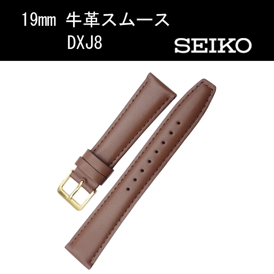- セイコー 牛革スムース DXJ8 19mm 茶 時計ベルト バンド 切身 はっ水 ステッチ付 甲丸 新品未使用正規品 送料無料