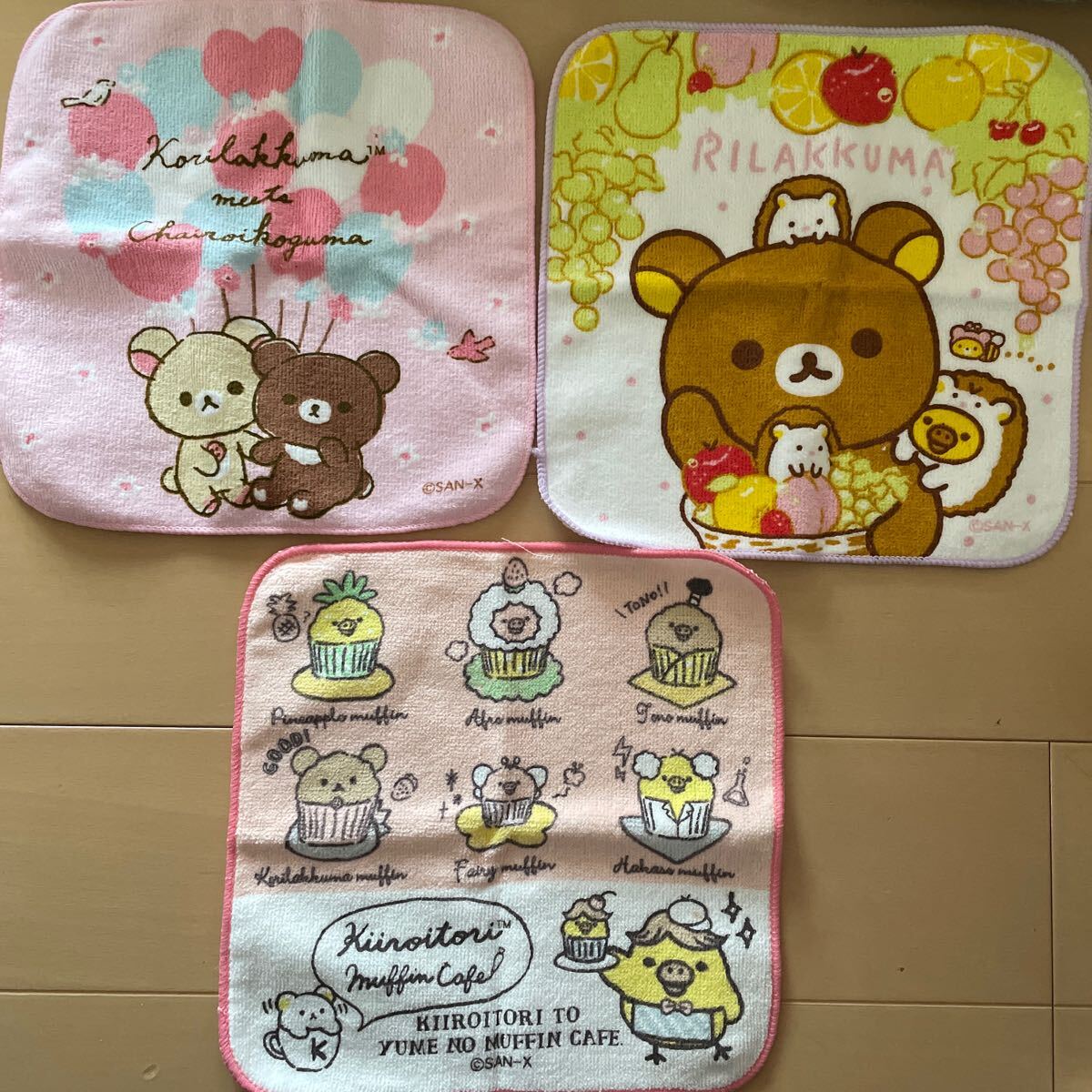 - 送料無料 新品 リラックマ プチタオル3枚セット ハンカチタオル 21×21cm 送料込み