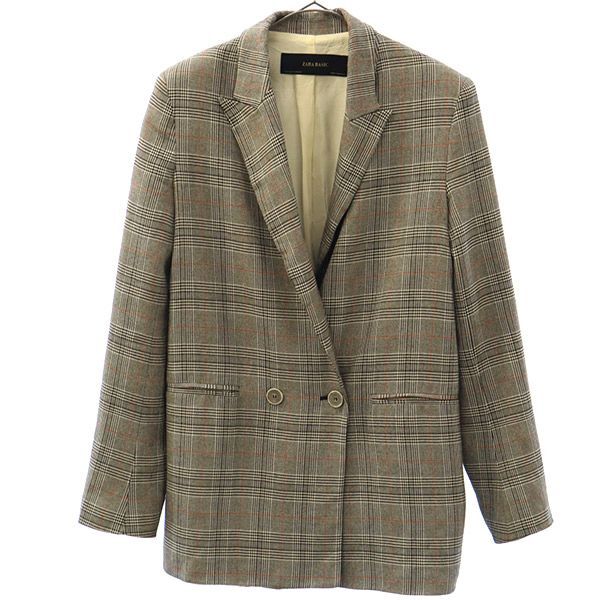 > ザラベーシック チェック柄 ダブル テーラードジャケット XS グレー ZARA BASIC レディース