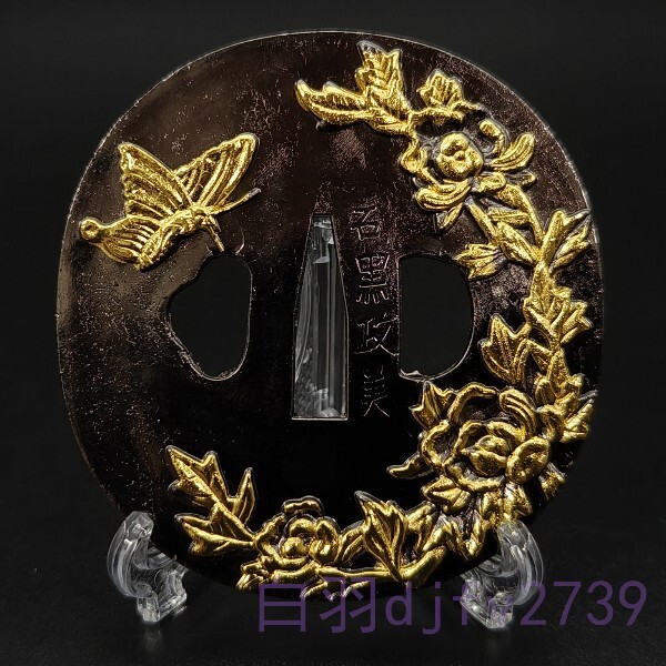 - SY60 日本刀装具 刀鍔 牡丹蝶図 合金製 現代品 つば ツバ 刀剣美術 重さ約115G 厚さ約5mm