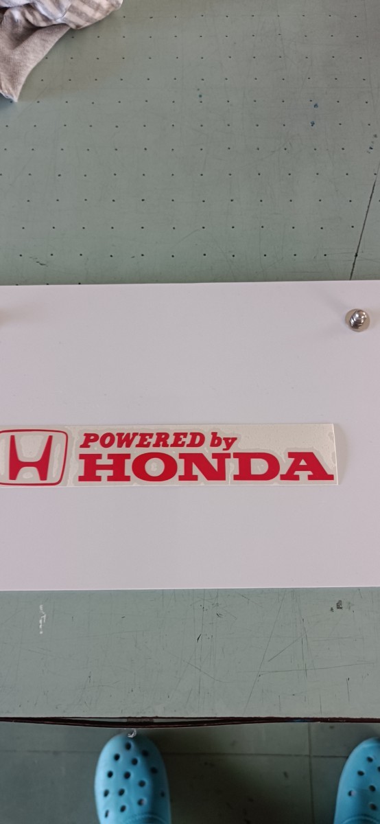 - ホンダステッカー POWERED by HONDA 透明に赤プリント