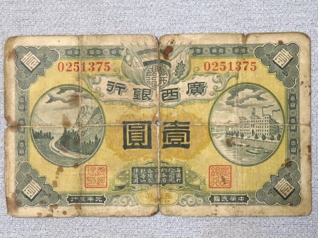 - 廣西銀行 壹圓札 梧州 中華民国元年 古銭 旧紙幣 古紙幣