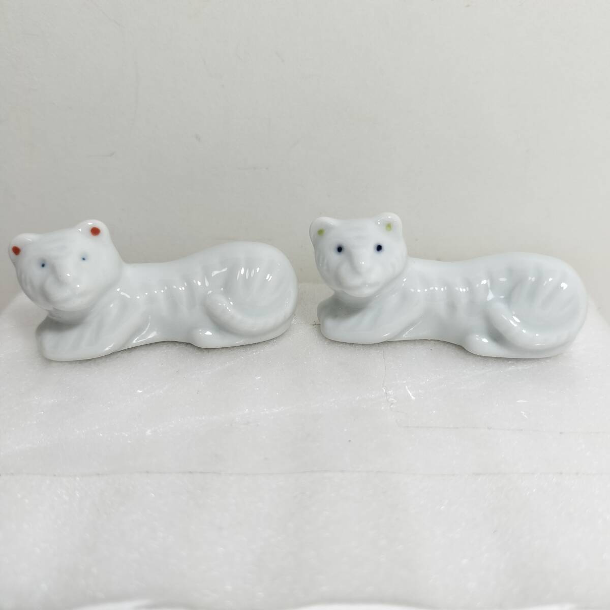 - 白磁 虎の箸置き 伏せ横 5cm ペアセット 未使用品 [箸置 テーブルウェア 寅 トラ 縁起物]