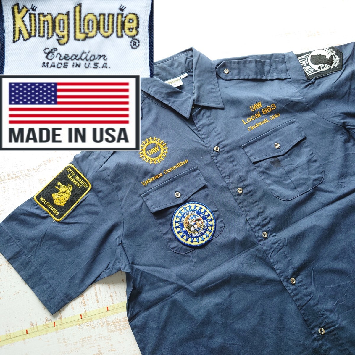 > R31 ワーク シャツ King Louie 半袖 アメリカ製 L 古着 キングルイ 刺繍 ワッペン 米軍 ベトナム 戦争 made in USA 行方不明 捜索 軍人 激