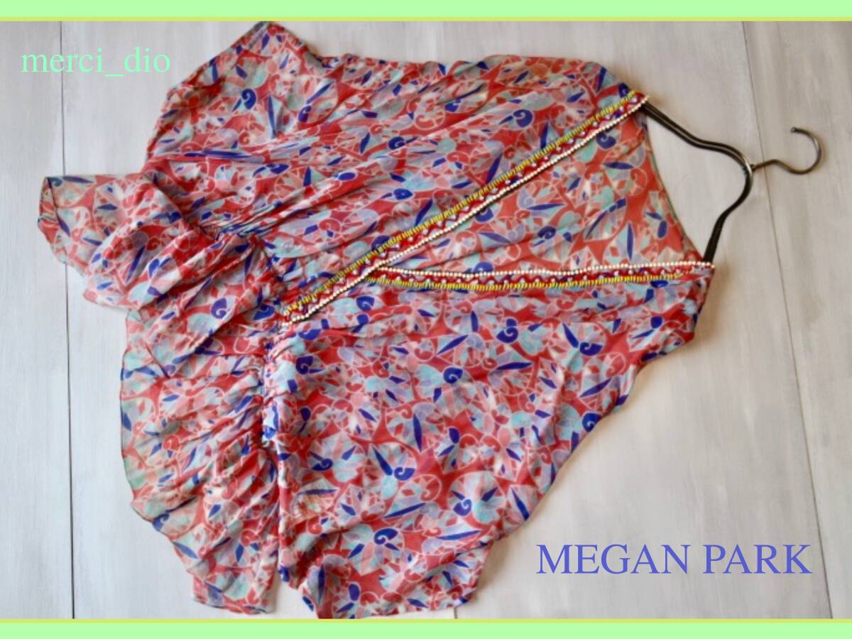 > 定価¥76000!ミーガンパーク MEGAN PARK シルク100% テキスタイル ビーズ ビジュー デザインブラウス 深V ロンドン フレア ドゥーズィエム