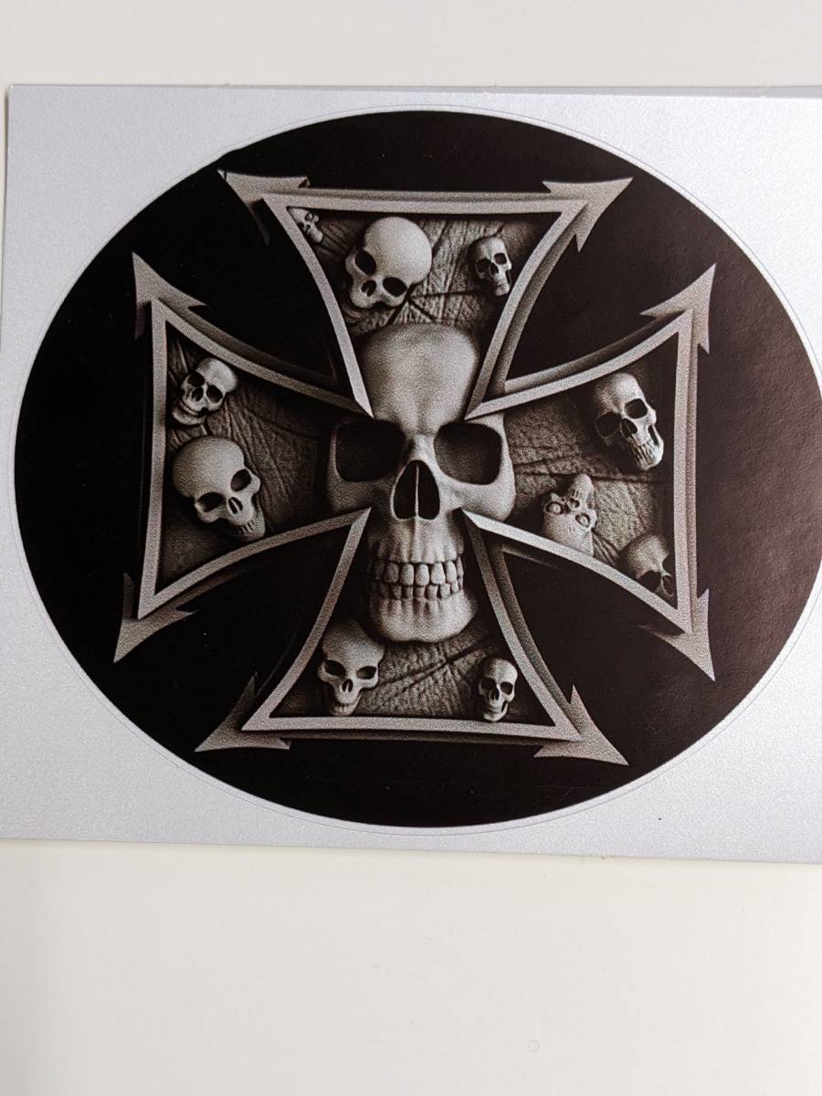 - 【十字架&スカル155mmx136mm11人】 アート 骸骨ステッカー ハーレー ヘルメット アメリカ USA ジープ バイク ミリタリー