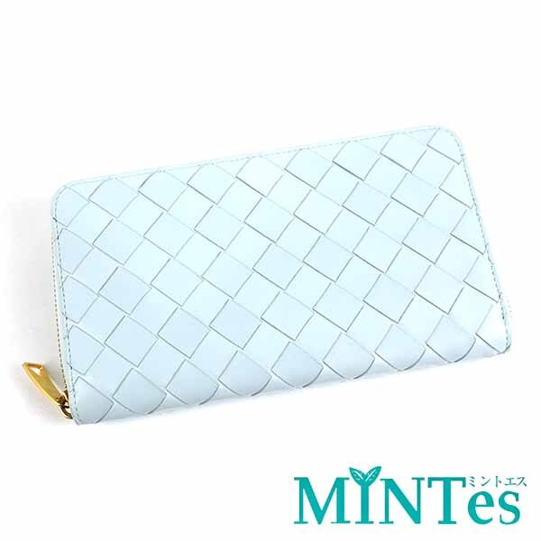 - Bottega Veneta ボッテガヴェネタ イントレチャート ラウンドファスナー長財布 ライトブルー レザー スタイリッシュ 網目模様 ブルー