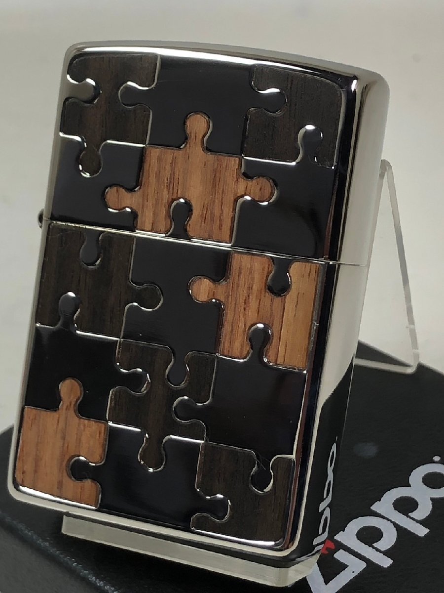 - ジッポーZippo ウッド パズル 銀&黒 市松格子ブラック&シルバー両面 Wood-SV 新品