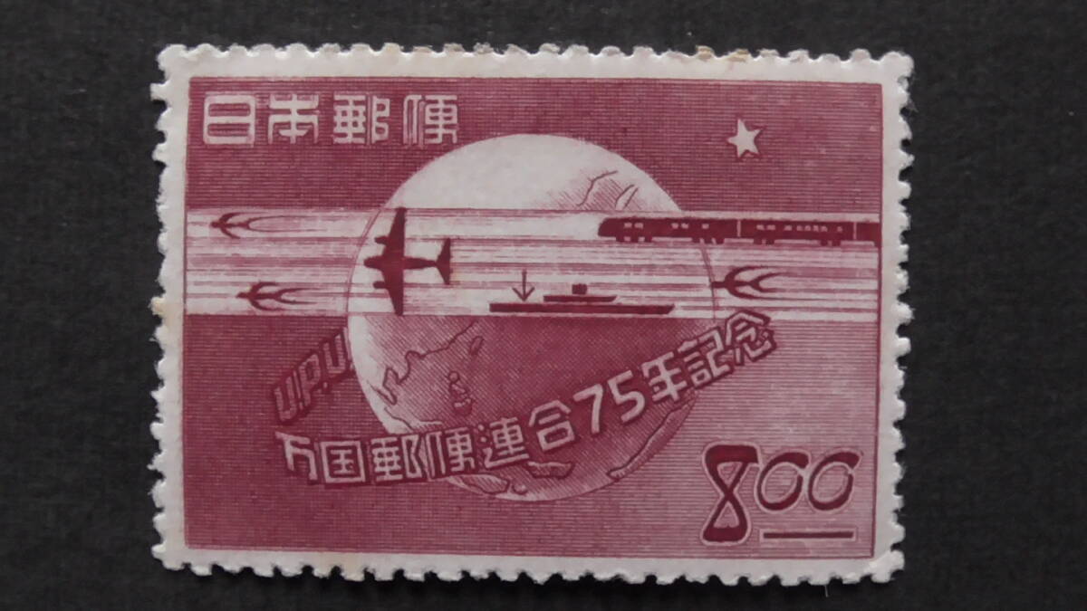 - 記念切手 『UPU75年・通信の象徴』 8円 シミあり