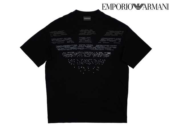 - エンポリオアルマーニ 7V1TV0 1JSAZ 0999 イーグルモチーフグラデーションロゴ柄メンズ向けブラック半袖オーバーサイズTシャツ L