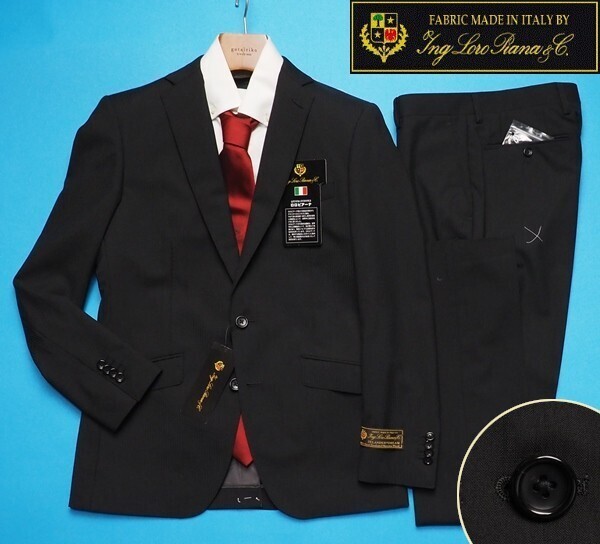 - 新品12.9万円 大手百貨店扱い 春夏『ロロピアーナ ZELANDER DREAM 伊製生地』ウール100% ストライプ スーツYA5黒(A) 1503861