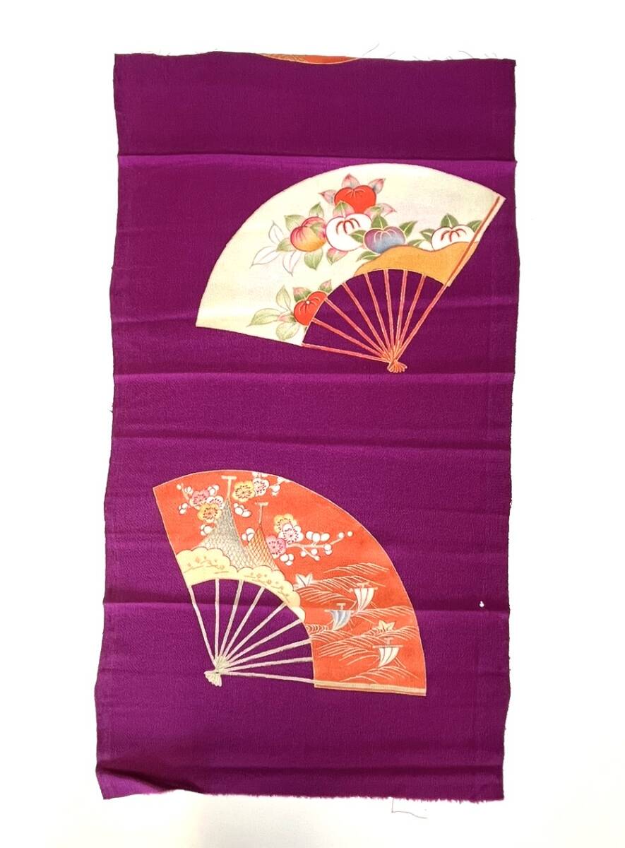 - 花とら●リサイクル端切れ リメイク 素材 細工用 紫 扇 ちりめん 240711-21