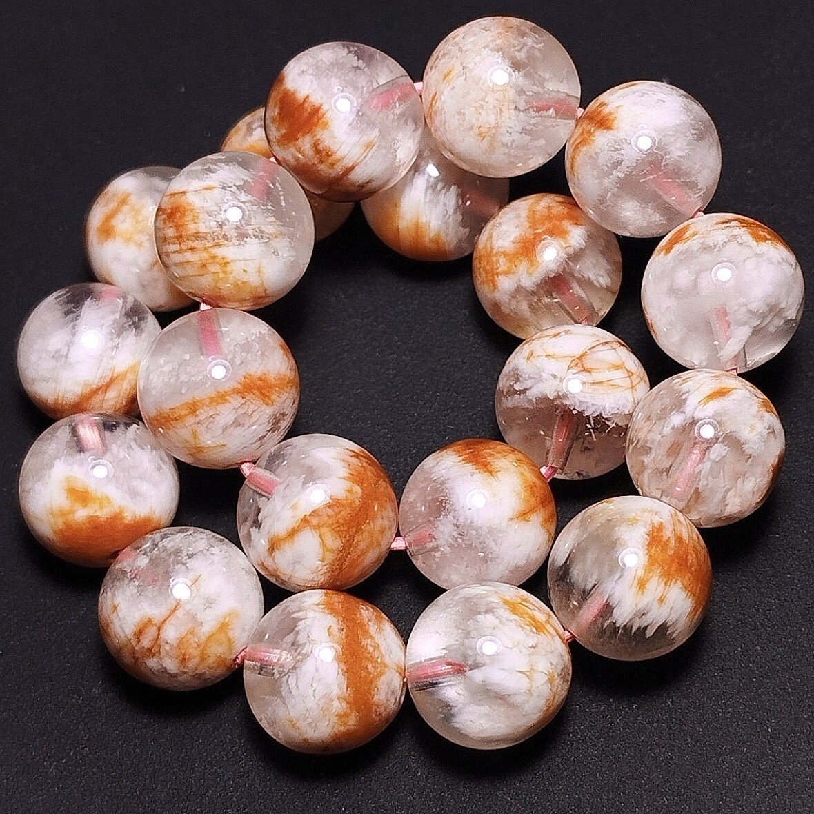 - 高品質 レッド オレンジセリサイトインクォーツ ブレスレット 9mm後半16cm