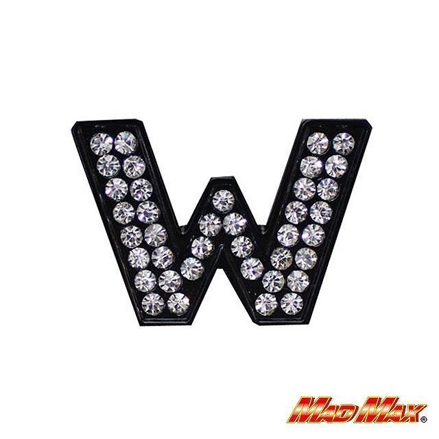 > MADMAX ダイヤ文字エンブレム ブラック W/クリスタル 1文字 ドレスアップ カスタム バイク 車 トラック【メール便送料170円】