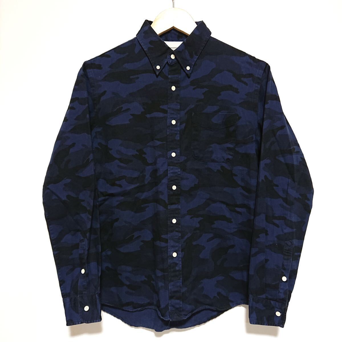 - H9657gg 日本製 SHIPS GENERAL SUPPLY(シップスジェネラルサプライ) サイズS 長袖シャツ 迷彩柄 ネイビー メンズ 綿100% ボタンダウン