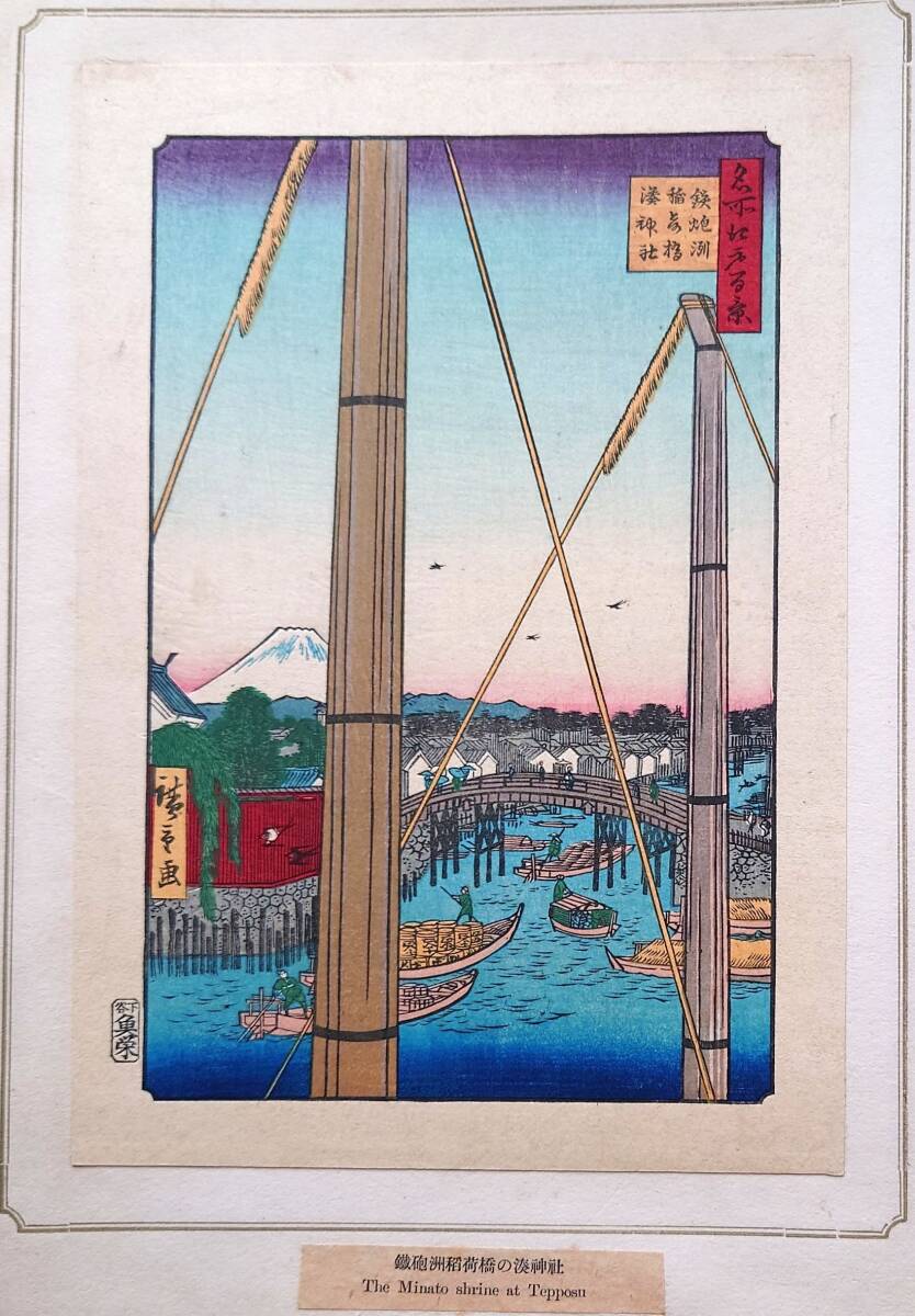 - f24080078〇名所江戸百景 彩色木版画 浮世絵 歌川広重 鉄砲洲稲荷橋湊神社 複刻昭和年代〇和本古書古文書