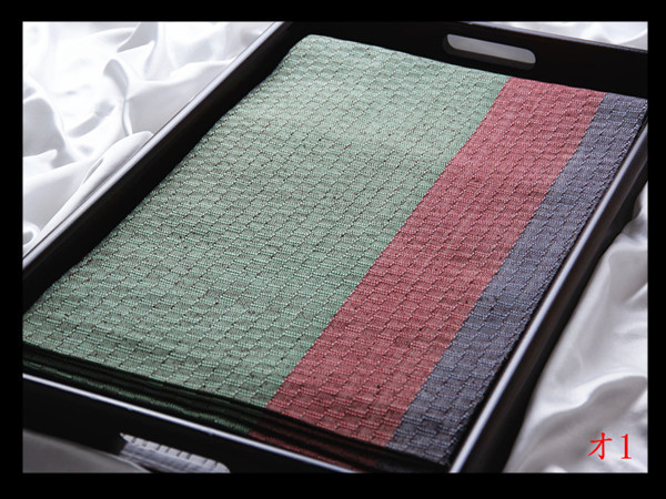 > オ1厳選西陣 手織り 薄青色真赭色薄花色 気品豊かに 高級美術正絹開き名古屋帯 新品同様 ◇検◇簪着物袋帯帯締め